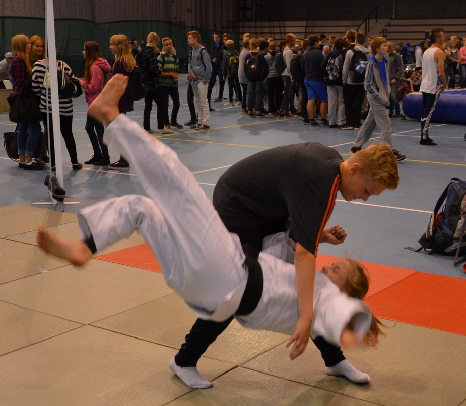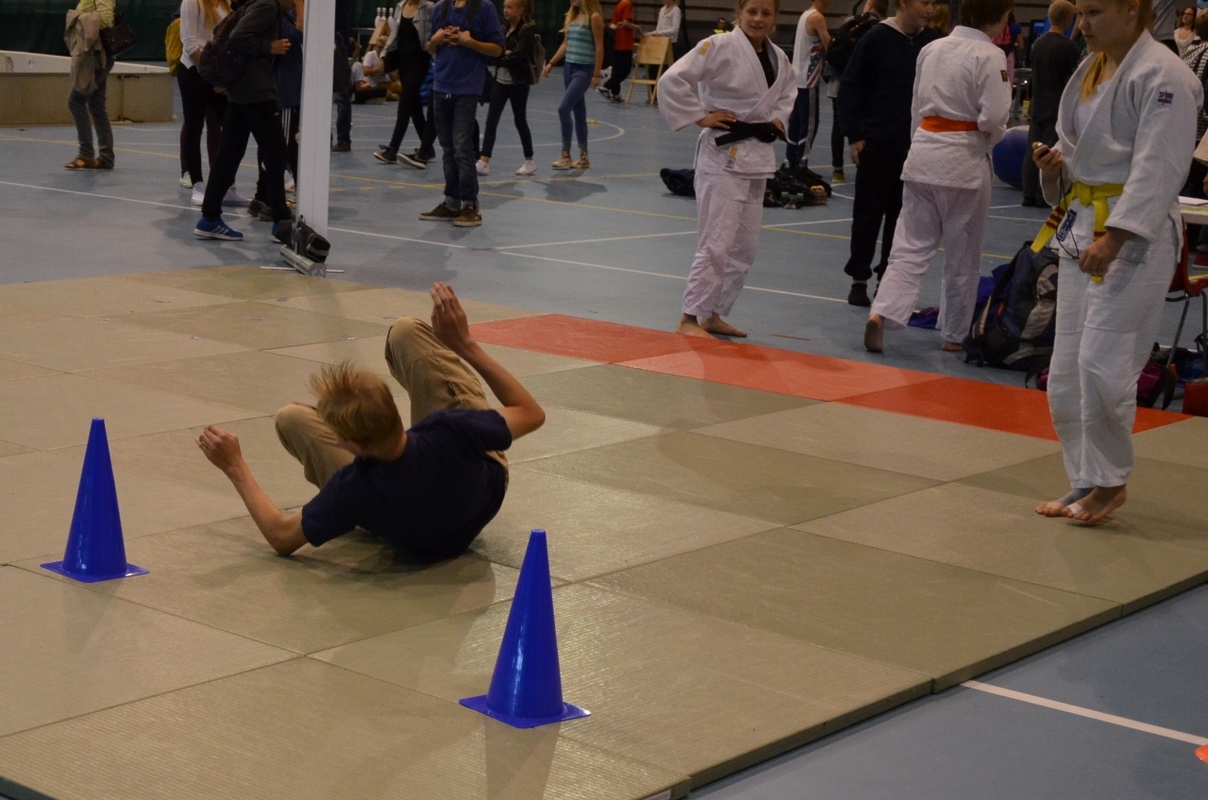 Judon ja taidon yhteinen tatami Lahden harrastemessuilla torstaina ja perjantaina veti hyvin koululaisia puoleensa. Torstaina käyneet alakoululaiset hakkasivat yläkoululaiset puhtaasti 6-0, kun mitattin innokkuutta, tiedon janoa ja rohkeutta tehdä jotakin, mitä itse haluaa, eikä myötäillä kaveriporukkaa. Vanhempia koululaisia vaivaava kaveriporukan paine näkyi muillakin lajeilla. Esimerkiksi kartingautot kiinnostivat, mutta niiden kokeilu jäi yllättävän vähäiseksi. Alakoululaiset sen sijaan halusivat kokeilla ja kyselivät paljon kartingiin liittyvistä asioista. Tatamin tuntumaan ja osin tatamille järjestetty helppo liikunnallinen rata innosti alakoululaisia yrittämään nopeinta aikaa, koska hyvällä ajalla pääsi valitsemaan palkinnokseen joko judon tai taidon ilmaisen peruskurssin. Hyviä aikoja tehtailtiin tiuhaan tahtiin ja useimpien liikunnalliset taidot olivat aika hyvällä tasolla. Katri Kakon aikaa sentään ei kukaan lyönyt. Katri pyyhkäisi radan 13 sekuntiin, kun torstaina paras koululainen tempaisi ajan 18 sekuntia. Perjantai muutti innokkuustilannetta tuntuvasti. Teini-iässä heiluvista koululaisista vain harvat uskalsivat ottaa haasteen vastaan ja yrittää parastaan. Muutamat pääsivät jopa kokeilemaan heittoja Katrin, Aadan ja Annikan (oranssivöinen) opastamana. Judo sai messuilla hyvää mainosta ja kurssiesite lähti monen koululaisen mukaan. Syyskuun 4. päivän jälkeen nähdään, miten hyvin messumainonta on toiminut.