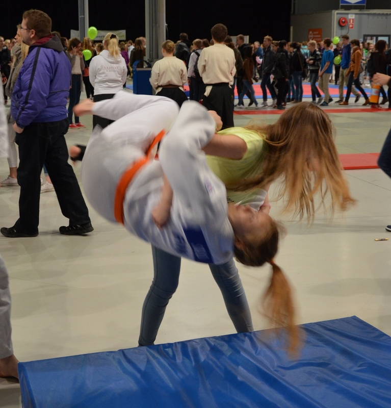 Lahden Judoseura osallistui perjantaina messukeskuksessa pidettyyn Vahvat ei kiusaa -tapahtumaan ja oli esillä vahvasati ja näkyvästi. Tuhannet päijäthämäläiset koululaiset ja opiskelijat saivat nähdä näyttävää tatamityöskentelyä ja osallistua itsekin kokeilemaan, kun seuran paikalla olleet judokat tarjoutuivat heiteltäviksi. Varmaan monille kiusaajille ja kiusatuille tuli selväksi, että judo on kaveria ja hänen terveyttään kunnioittava kamppailulaji, joka vetää puoleensa yhä enemmän liikunnasta, kilpailemisesta ja kuntoilusta kiinnostuneita nuoria ja vähän iäkkäämpääkin väkeä. Seuran judokoista tatamilla ja judogiin pukeutuneina olivat Aada Salo, Jenni Marjanen, Nanna Heinonen, Annika Tanttu, Ilkka Vuorio ja Zico Aziz. Joukkoa johti puheenjohtaja Sanna Pyykönen. Paikalle ilmestyneet Pyykön veljekset Markus ja Miska eivät malttaneet pysyä tatamin ulkopuolella, vaan väänsivät randoria "siviilivaatteissaan". Markus intoutui vielä niin paljon, että lainasi Sannan pukua ja veti ranttua hiki otsalla.