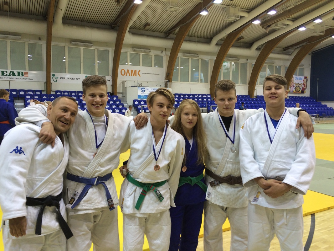 Matka ouluun oli pitkä, mutta se oli todellakin sen arvoista. Kisat olivat järjestetty melko hyvin muutamia poikkeuksia lukuunottamatta: kun perjantai-iltana saavuimme Ouluun, ilmoittautumisessa pyöriteltiin päätä, kun kysyimme missä majoituspaikka oli. Sen sijainti piti itse selvittää. Kaiken lisäksi se aukesi vasta tuntia myöhemmin kun mitä ensimmäisen kerran yritimme mennä sinne. Kaikki majoittuivat samassa koulun salissa, jossa oli melko kylmä nukkua. Onneksi majapaikka oli kuitenkin lähellä kisapaikkaa. Ensimmäisenä iltana ennen nukkumaanmenoa kävimme pienellä omatoimisella lenkillä Lahden kisaporukan kanssa "tutustumassa Ouluun", eli kierrettiin kolme korttelia ja tultiin takaisin... Kisa-aamuna kaikki menivät puoli yhdeksän aikaan punnitukseen, ja jokainen pääsi omaan sarjaansa. Ottelut alkoivat ajallaan ja kulkivat sujuvasti ilman sen suurempia häiriötä. Zicon ottelut olivat ensimmäisenä ja hän voitti pronssia.U-18 ikäluokan ottelut alkoivat joskus yhden aikaan, mutta joillekkin tuli reilusti yli tunti taukoa otteluiden välille, kun nuoremmille jaettiin mitalit siinä välissä. Jokainen lahtelainen judoka toi mitalin kotiin, Timo kullan, Markus hopean, Miska,Zico ja Aada pronssin. Myös Hollolan Holjutain Noora Nykänen voitti kultaa. Kisojen jälkeen menimme heti syömään ja hetken levon jälkeen Mannen vetämiin treeneihin. Illan treenit olisi voineet ola hieman enemmän venyttelyä ja palauttelua, eikä judoa, sillä pitkän kisapäivän jälkeen ei jaksaisi enää keskittyä treenaamiseen. Seuraavan päivän treenit olivat hyviä. Aamulla mattoa ja päivällä heittoja ja paljon randoreita, eikä kukaan sen suuremmin loukkaantunut koko leirin aikana. Hyvän ruuan jälkeen oli hyvä istua autoon ja lähteä kotia kohti. Kokonaisuutena kisaviikonlopusta jäi todella hyvä fiilis. Kisapäivä meni hyvin, yhteishenki Lahden joukkueella oli erinomainen ja kaikilla taisi olla aika hauskaa. Valmentajat ja kilpailijat hoitivat osuutensa moitteettomasti ja tästä on hyvä jatkaa seuraaviin kisoihin. Teksti: Aada Salo, Kuva: Sanna Pyykönen
