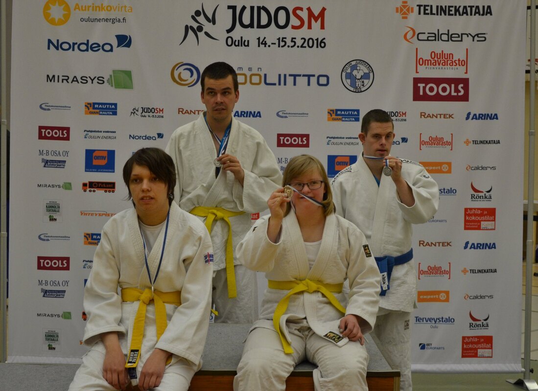 Lahden Judoseuran sovellettun judokat saavuttivat Oulun SM-kisoissa kolme hopeaa ja yhden pronssin. Positiivisin yllätys oli kahden ensikertalaisen, Sonja Salakan ja Essi Metsäsen menestys elämänsä ensimmäisissä judokisoissa. Sonja otti sarjassaan hopeaa ja Essi pronssia. Essin ja Sonjan lisäksi mitaleille ylsivät Petri Kuusisto ja Jaakko Mäenpää. Molemmat ottelivat hopealle. Sarjavoitto oli Jaakolla lähellä, sillä hän hävisi Lappeenrannan Elmo Suurkuukalle vain 1-0 ja voitti Tikkurilan Henri Vierulan kahdella yukolla eli voittopistein 5-0. Kun Henri kukisti Elmon pistein 7-0, hän voitti alle 73-kiloisten sarjan ja Jaakko jäi hopealle viidellä pisteellään. Petri Kuusisto kävi perinteisen voittokamppailun Mikkelin Tuomas Venäläistä vastaan. Istahtamoinen ratkaisevassa väämnnössä koitui Petrin tappioksi, kun Tuomas pääsi ottamaan sidonnan, joka piti loppuun asti. Petrin ipponvoitto Mikkelin Aleksi Luukkosesta oli tapahtumarikas, mutta Petri pääsi ottamaan nätin mattokäännön jälkeen pitävän sidonnan. Sonja Salakka kävi jatkoajalle venyneen kamppailun Raision Hanna Summasta vastaan. Yhtään suoritusta ei tullut kummallekaan ja tuomarin päätöksellä Hannasta leivottiin voittaja pistein 1-0. Sonja kuittasi tappionsa Mikkelin Jenni Pokkista vastaan ottamalla ipponvoiton 22 sekunnissa. Essi Metsäsen tie pronssille oli alkaa tappiolla seurakaveria Ilona Lindroosia vastaan. Ilonaz pääsi heti ottelun alussa kaatamaan Essiin, mutta pisteitä ei herunut, koska Ilonalla oli kielletty kahvaote. Seuraavasta aloituksesta Essi pääsi kiertämään Ilonan oikealle puolelle ja tekemään näyttävän osotogarin, jolla tuli ippon 14 sekunnissa. Essin toinen voitto tuli ipponilla Tikkurilan Tiona Luodosta. Siinäkään ottelussa Essi ei aikaillut, vaan pamautti vastustajansa tatamiin 26 sekunnissa. Ilona ainoa voitto tuli Tionasta, mutta sillä ei mitaleille noustu. Voittonsa Ilona ratkaisi vain sekunti ennen otteluajan päättymistä. |
