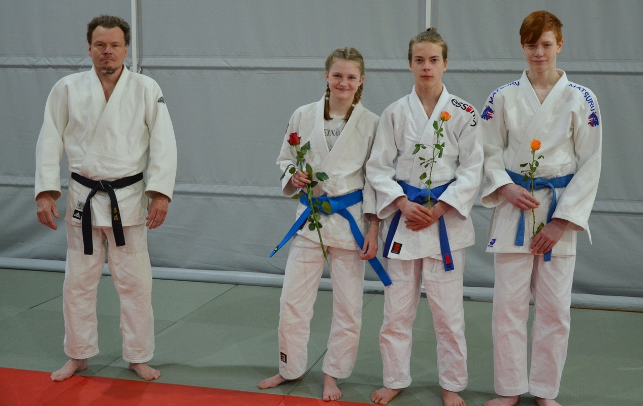 Seuran judokoista kaikkiaan 32 suoritti uuden vyöarvon äitienpäivänä. Samalla kaikille jaettiin ruusu. Vyöarvoja korotettiin keltaisesta siniseen. Sinisen vyön suorittajia oli kolme, vihreän suorittajia viisi samoin kuin oranssin. Keltaista väriä vyötäisilleen sai 19 judokaa, joista kolme oli aikuisten peruskurssilta ja loput lasten peruskurssilta. Vyökokeita oli valvomassa graduointioikeuksilla Pekka Mielonen, Ari Peltonen ja Ilkka Valtasaari. Apuna kolmikolla oli Tuomas Saarenpää. |